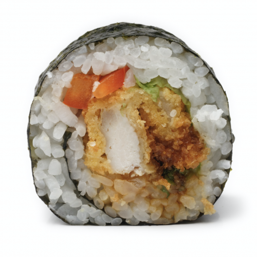 Delicious crumbed Cripsy (Katsu) Chicken, Lettuce, Red Capsicum and Teriyaki Sauce