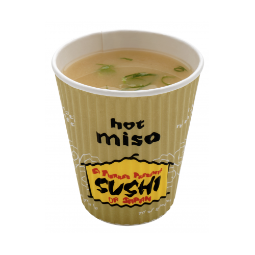Traditional Japanese soup consisting of Miso paste (fermented beans), Dashi stock (fish), Spring Onion and Seaweed